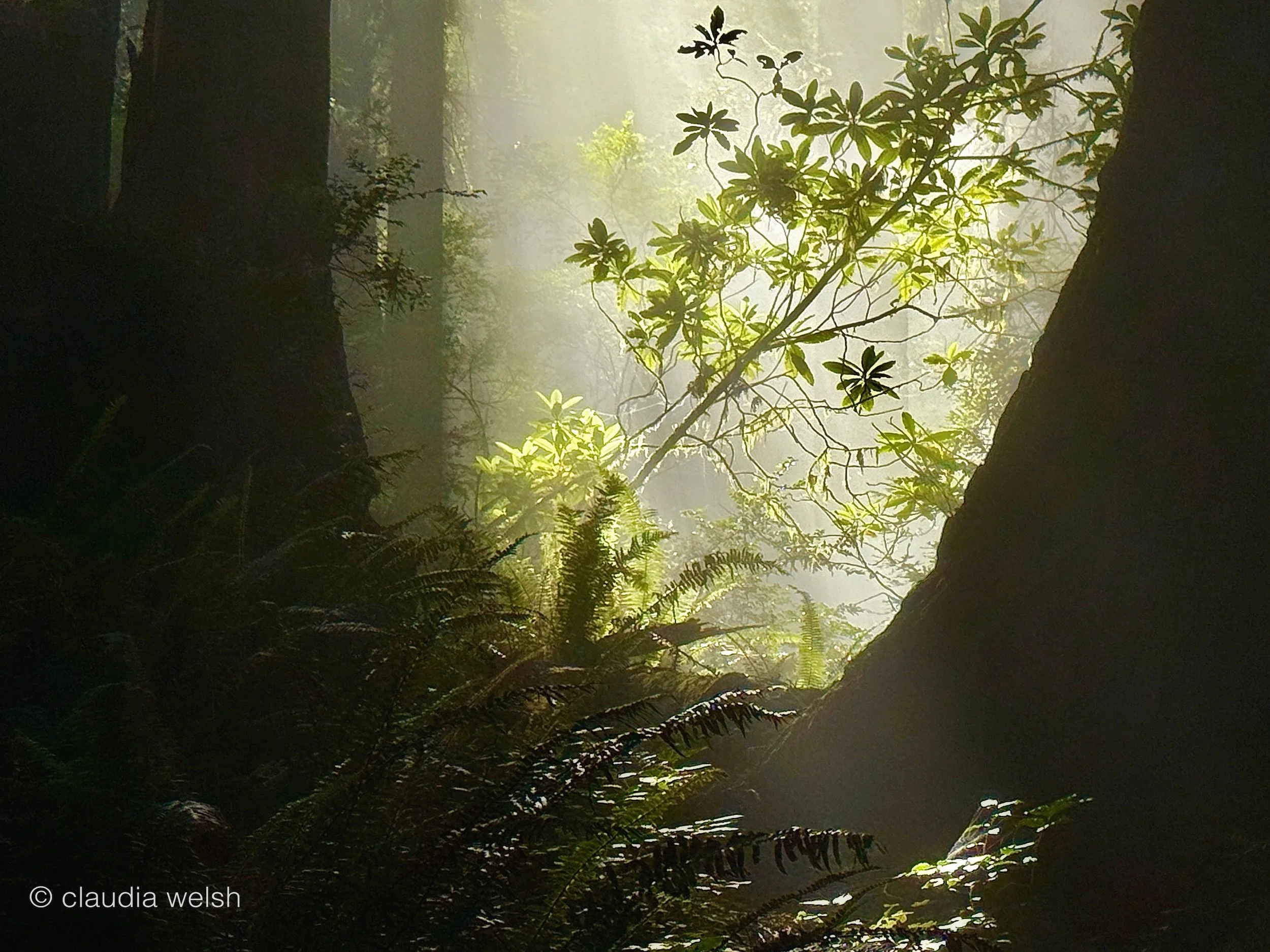 It was sensory from the very beginning—the cool, fresh air hitting my face, shafts of light streaming down through the tallest trees, the lush, layered vegetation that seems to grow in every direction. As a child, the redwood forest was simply my favorite place to be. That feeling hasn't changed, but what has changed is that I now have a way to hold onto it. I open my iPhone, stand still, and try to breathe it all in. The fog, the sunbeams, the deep dark comfort of the woods—I find myself not just experiencing these things but looking for how to best capture them and bring them back with me. The call is the same. The response has grown into something more.